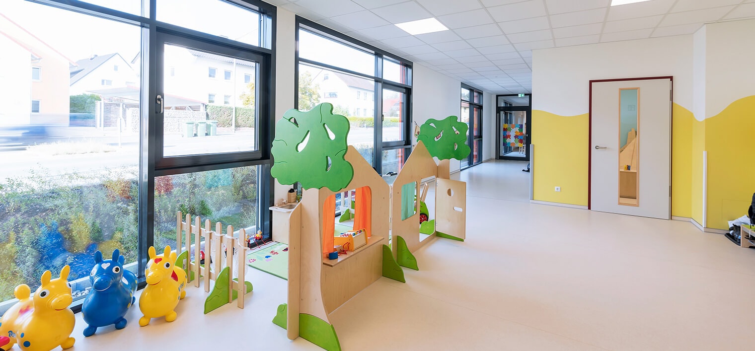 Kindgerechte Räume entstehen durch nutzungsspezifische Konzepte, die Architekten in Zusammenarbeit mit bauausführenden Unternehmen wie KLEUSBERG entwickeln. Kindertagesstätten und Kinderkrippen gelten als förderliche und anregende Umgebung und verlangen ein dazu passendes Raumbuch. KLEUSBERG hat bereits zahlreiche Projekte mit externen Planern realisiert. Darunter auch das Architektur- und Designbüro baukind aus Berlin.
