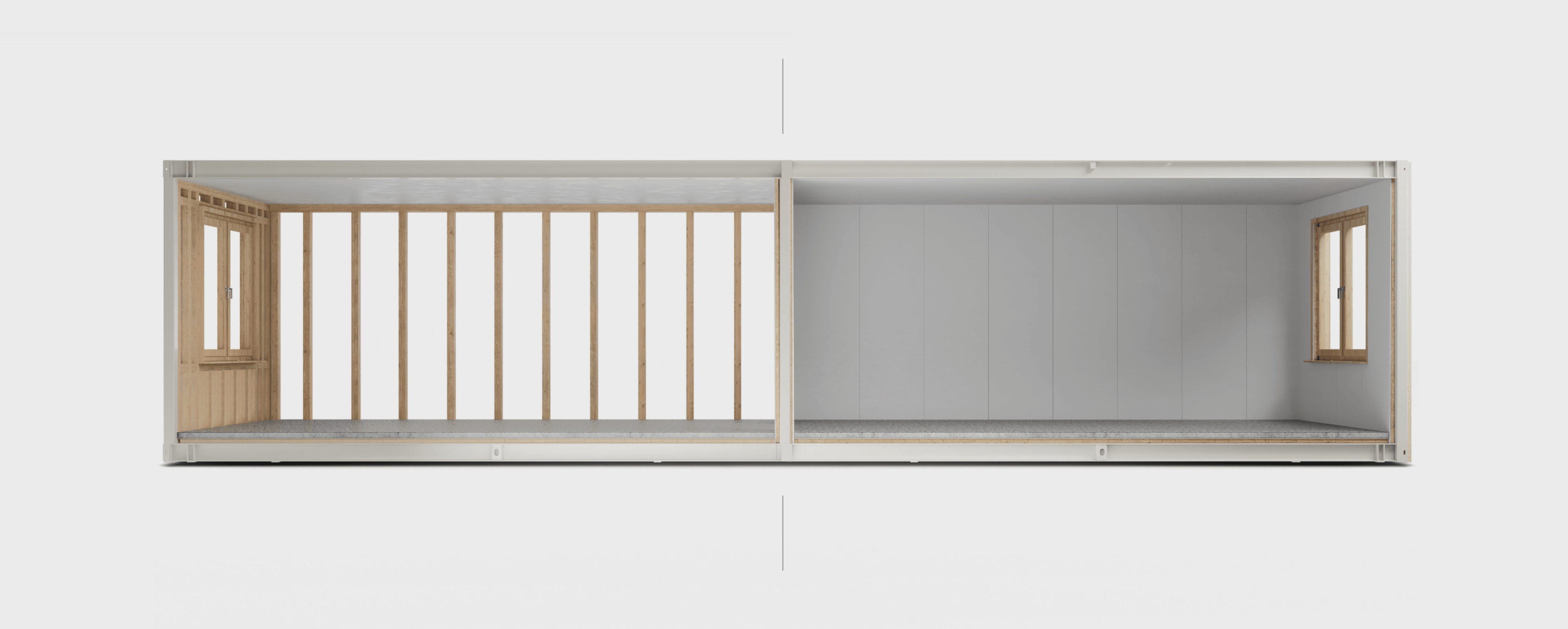 Beim Holz-Hybrid-Modulbau besteht das statisch relevante Tragwerk der einzelnen Raumsegmente aus Stahl. Es gewährleistet eine vertikale Lastabtragung mittels weniger Stützen und ermöglicht somit großzügige, offene Räume. Die flächigen Wand-, Decken- und Bodenelemente hingegen werden aus Holz gefertigt und sorgen bei späteren Nutzungsänderungen für eine noch einfachere Anpassung der Raumaufteilung.