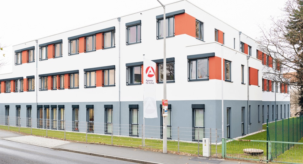 Als Fünfte im Bunde entstand vergangenes Jahr auch die Agentur für Arbeit in Freiberg. Dank der kurzen Bauzeit von nur 5 Monaten konnten die 55 Mitarbeiterinnen und Mitarbeiter frühzeitig das neue Dienstgebäude beziehen. Besonderes Augenmerk liegt auf dem gleichzeitig im Gebäude eröffneten Berufsinformationszentrum (BIZ). Auf insgesamt 200 Quadratmetern können sich hier in Zukunft alle Interessenten informieren. 32 Internetarbeitsplätze ermöglichen den Besuchern die selbständige Erarbeitung von Informationen rund um das Thema Arbeit. Auch im Falle einer persönlichen Beratung ist ausreichend Raum für Privatsphäre gegeben.