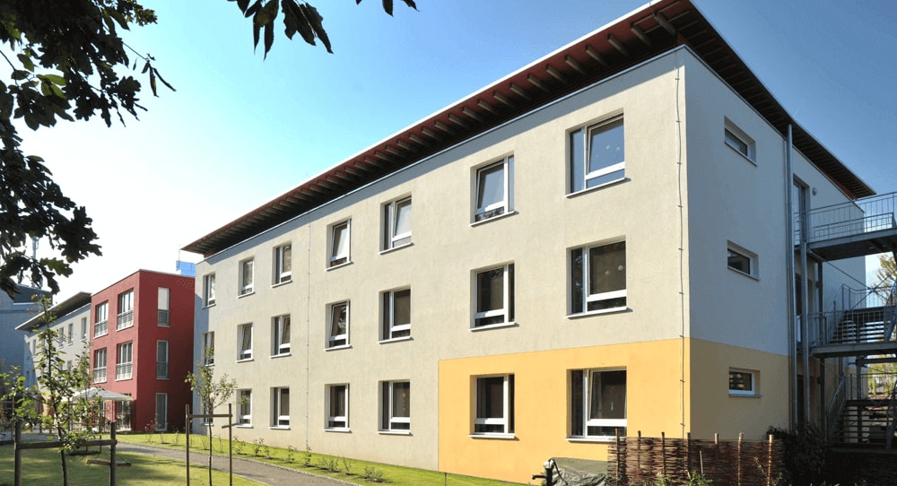 Gebaut in den 1960er-Jahren, erfüllte das Bestandsgebäude des Altenpflegheims St. Josef nicht mehr die Anforderungen einer zeitgemäßen Einrichtung. Mit dem Teilrückbau des Altgebäudes und dem in nur fünf Monaten erstellten Neubau hat das Pflegezentrum seine Kapazitäten um 84 weitere Pflegeplätze ausweiten können. Die Herausforderung beim bestandsnahen Bauen liegt immer wieder auch darin, dass ein Neubau bei laufendem Betrieb und ohne Beeinträchtigung der Bewohner bzw. Mitarbeiter im Bestandsgebäude vonstattengehen muss. Deswegen eignete sich bei diesem Projekt die Modulbauweise optimal. Dank der im Werk bei KLEUSBERG nahezu vollständig ausgebauten Raumeinheiten war es möglich, den Aufbau vor Ort in nur wenigen Tagen und vor allem ohne die sonst baustellenüblichen Belästigungen wie Lärm und Schmutz durchzuführen. Besonders die erhebliche Verkürzung der Bauzeit auf 5 Monate durch die Modulbauweise von ursprünglich veranschlagten 20 Monaten bei konventioneller Bauweise ist außergewöhnlich. Das beeindruckt allein schon deswegen, weil ein Passivhaus ein weitaus anspruchsvolleres Bauprojekt als sonst üblich darstellt.