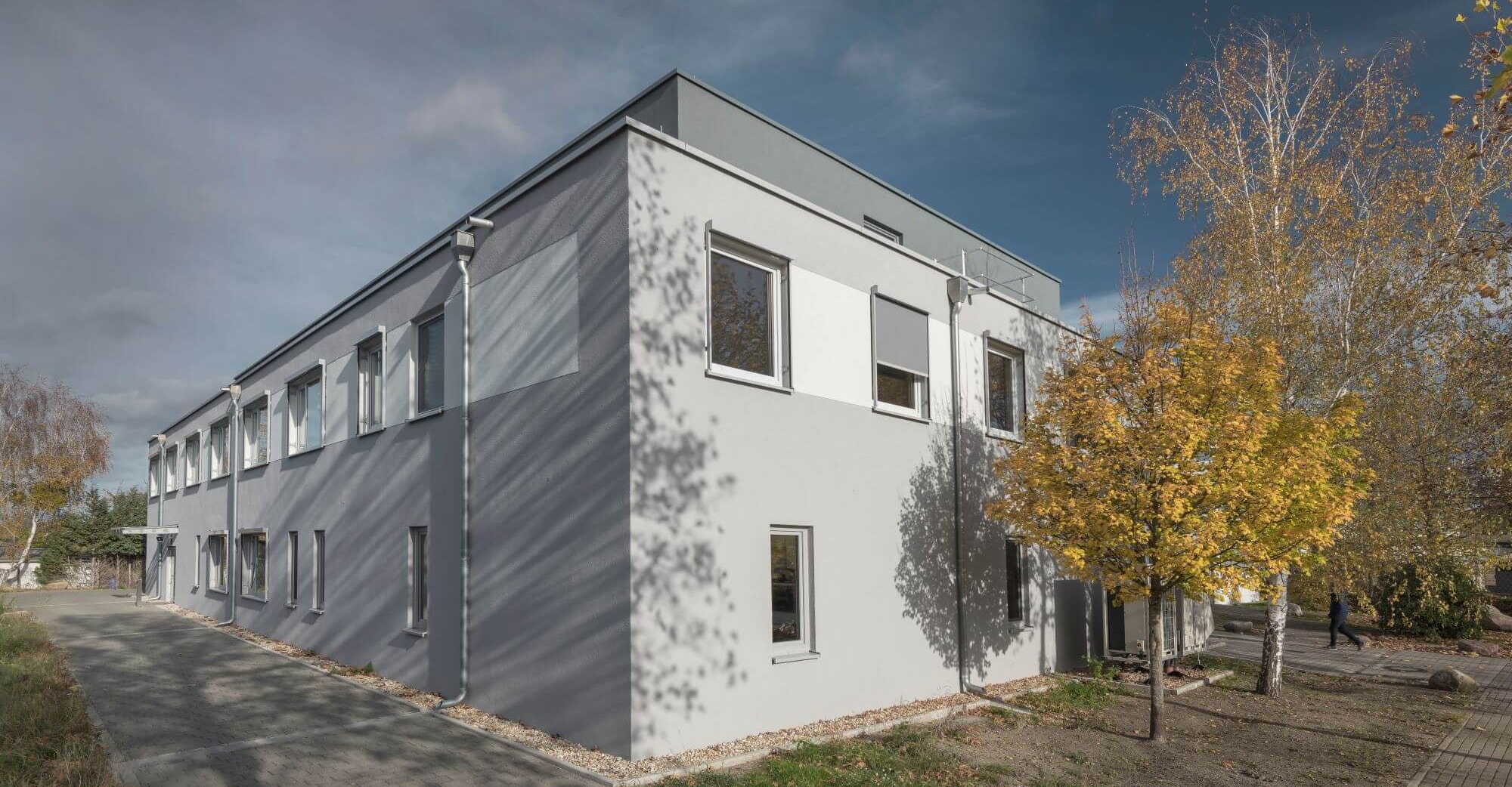 Das 1.040 m² große, staffelgeschossige Bürogebäude verfügt über 3 Etagen, in denen zukünftig die Verwaltungstätigkeiten des Medizinischen Versorgungszentrums abgehalten werden. Die Putzfassade ist mit einem Wärmedämmverbundsystem (WDVS) versehen.