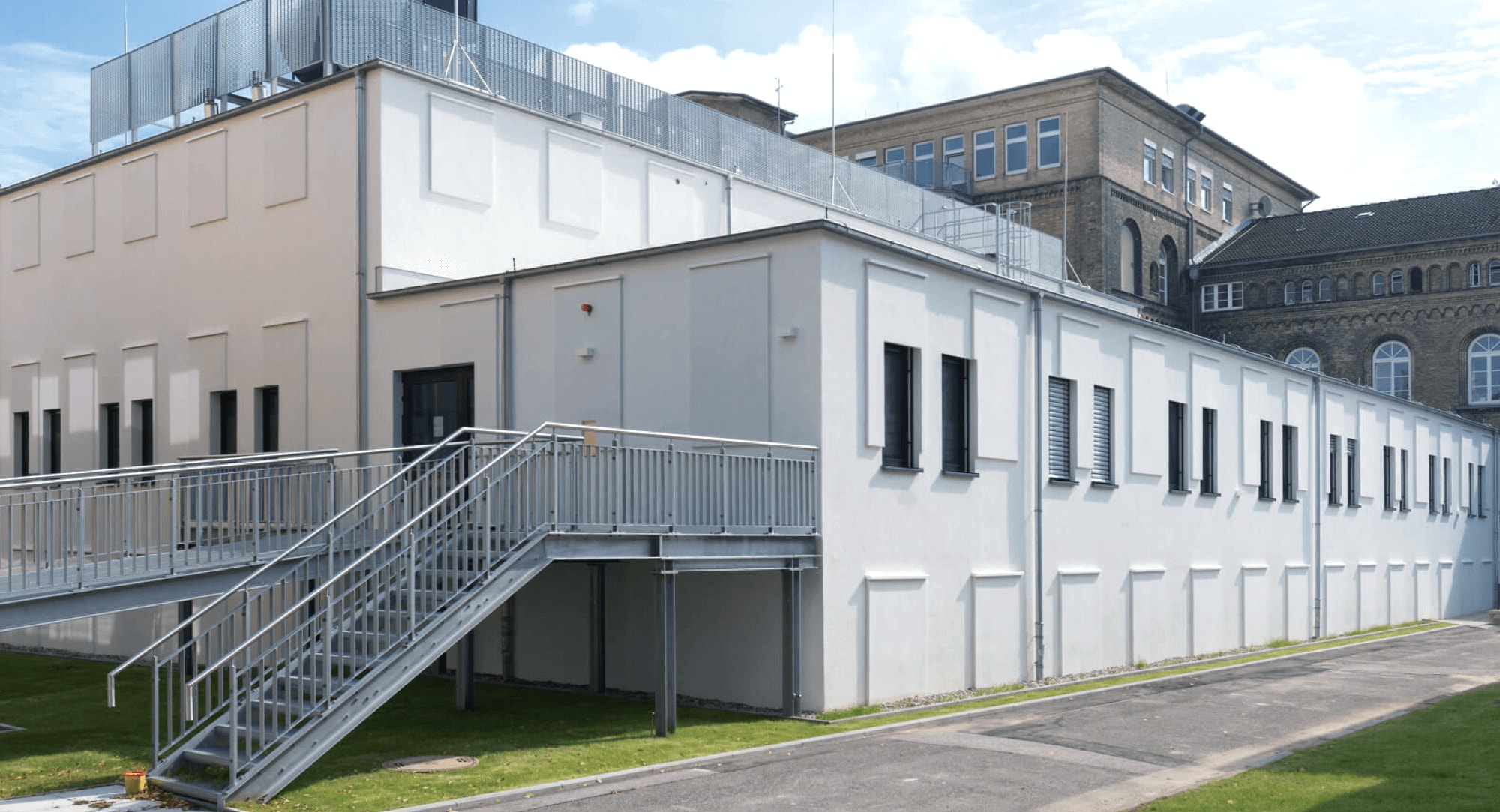 Mit der neuen Einrichtung sollen künftig Patienten, bei denen der Verdacht auf eine Infektionserkrankung besteht, besser isoliert werden können, um das Risiko von Keimübertragungen zu minimieren. Durch die moderne Infrastruktur sollen auch die Wege der Krankenversorgung verkürzt und Therapiemöglichkeiten optimiert werden. Das Modulgebäude und die bestehende Intensivstation sind im Erdgeschoss miteinander verbunden, um eine effiziente medizinische Versorgung zu ermöglichen. Die Geräteausstattung der Station befindet sich auf neuestem technischem Stand und erlaubt es, die Funktion einzelner Organe zu unterstützen oder zu ersetzen (Herz-Lungen-Ersatzverfahren, Leberersatzverfahren, Dialyse). So können alle Arten von schweren internistischen Erkrankungen optimal intensivmedizinisch behandelt werden. Die Fassadengestaltung gleicht der des ebenfalls von KLEUSBERG errichteten Herzkathetermessplatzes auf dem Campus und schafft ein einheitliches Gesamtbild. Punktuell vorspringende Fassadenflächen unterstreichen dabei die Architektur des Gebäudes.