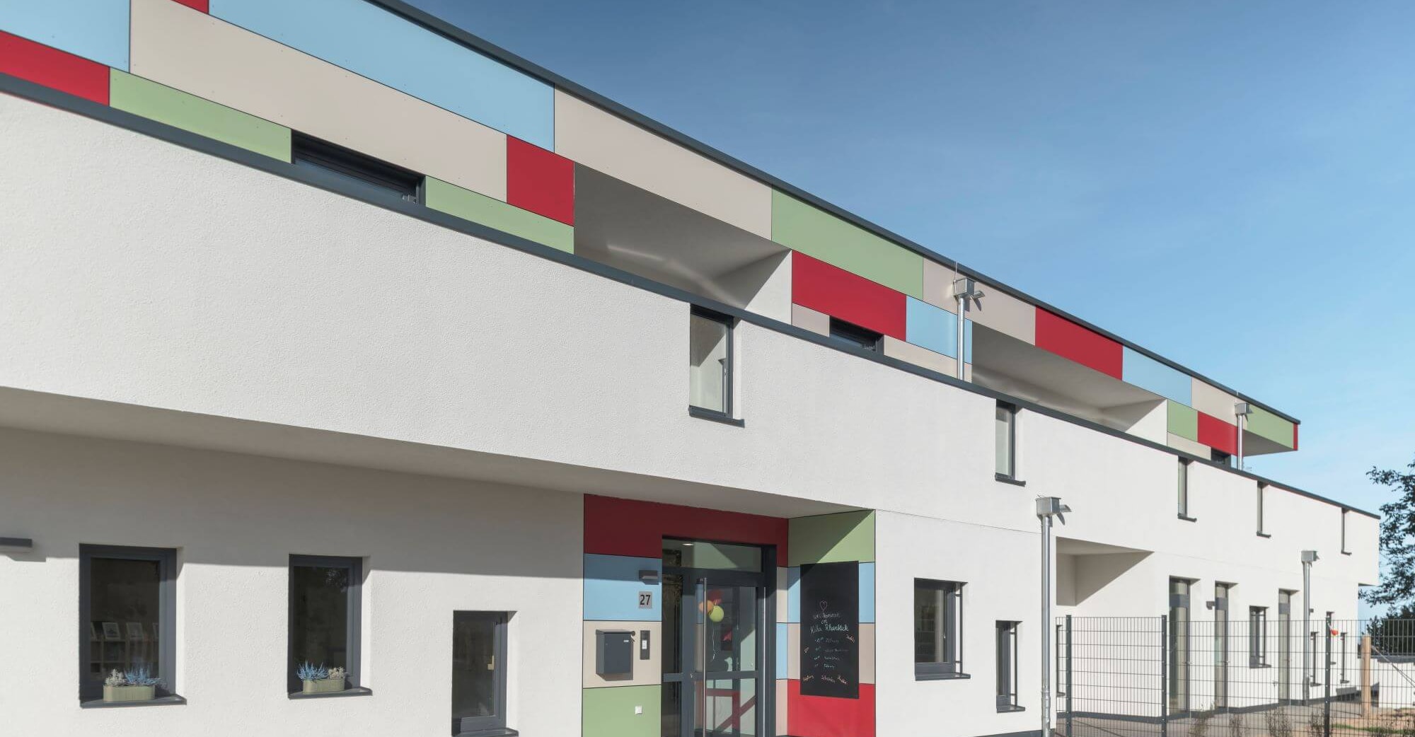 In der Stadt Brühl hat KLEUSBERG vor kurzem die Kindertagesstätte KiKu Rheinblick erbaut. Diese bietet Platz für 92 Kinder, die in 5 Gruppen betreut werden. Durch die signifikant bunte Vorhangfassade ist das Gebäude ein Eye Catcher. Die farbenfrohen Akzente bieten die geeignete Umgebung, um die Kreativität der Kinder zu fördern.