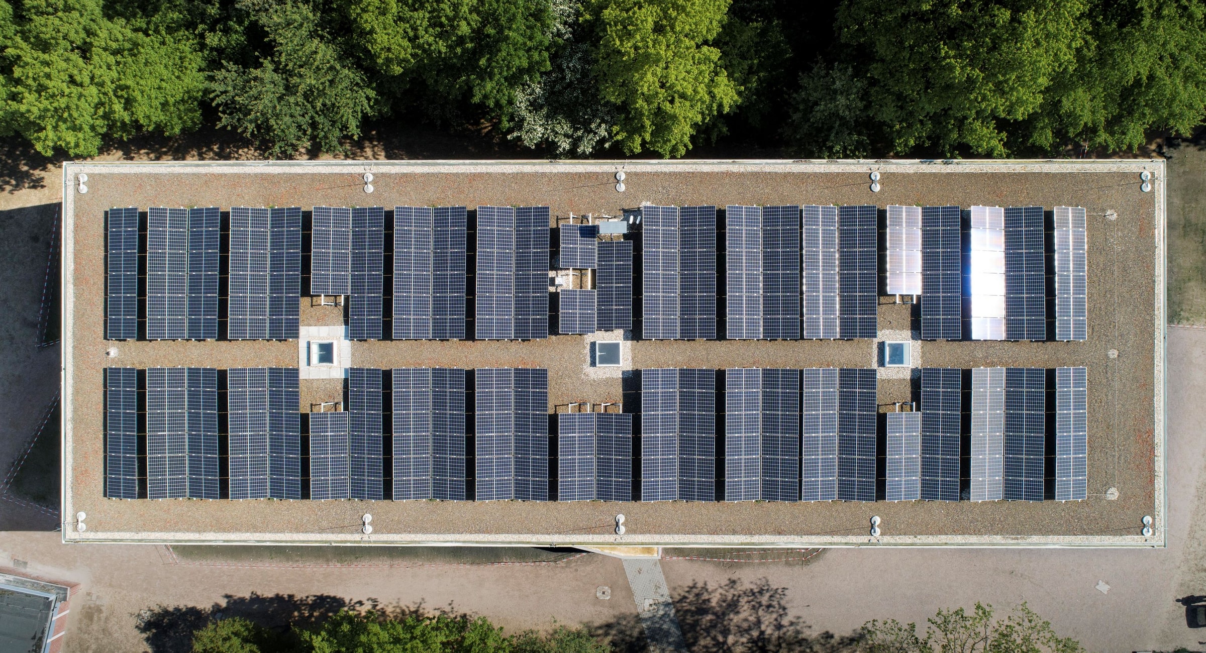 Lüftungsgitter an den Außenfenstern dienen der Nachtauskühlung. Kippbare, zum Flur ausgerichtete Innenfenster ermöglichen das Querlüften. Die Beheizung erfolgt mittels Nähwärmeanschluss. Das Dach erhielt eine extensive Begrünung, die wie eine Art natürliche Klimaanlage wirkt. Ebenfalls auf dem Dach befindliche Module der Photovoltaikanlage wurden daher aufgeständert montiert. Neben dem Treppenhaus ist das Obergeschoss mittels Personenaufzug erreichbar. Die Aufzugstür sowie die Zwischentüren sind mit Glas ausgeführt. Das transparente Konzept im Gebäude wird damit weiter fortgeführt.