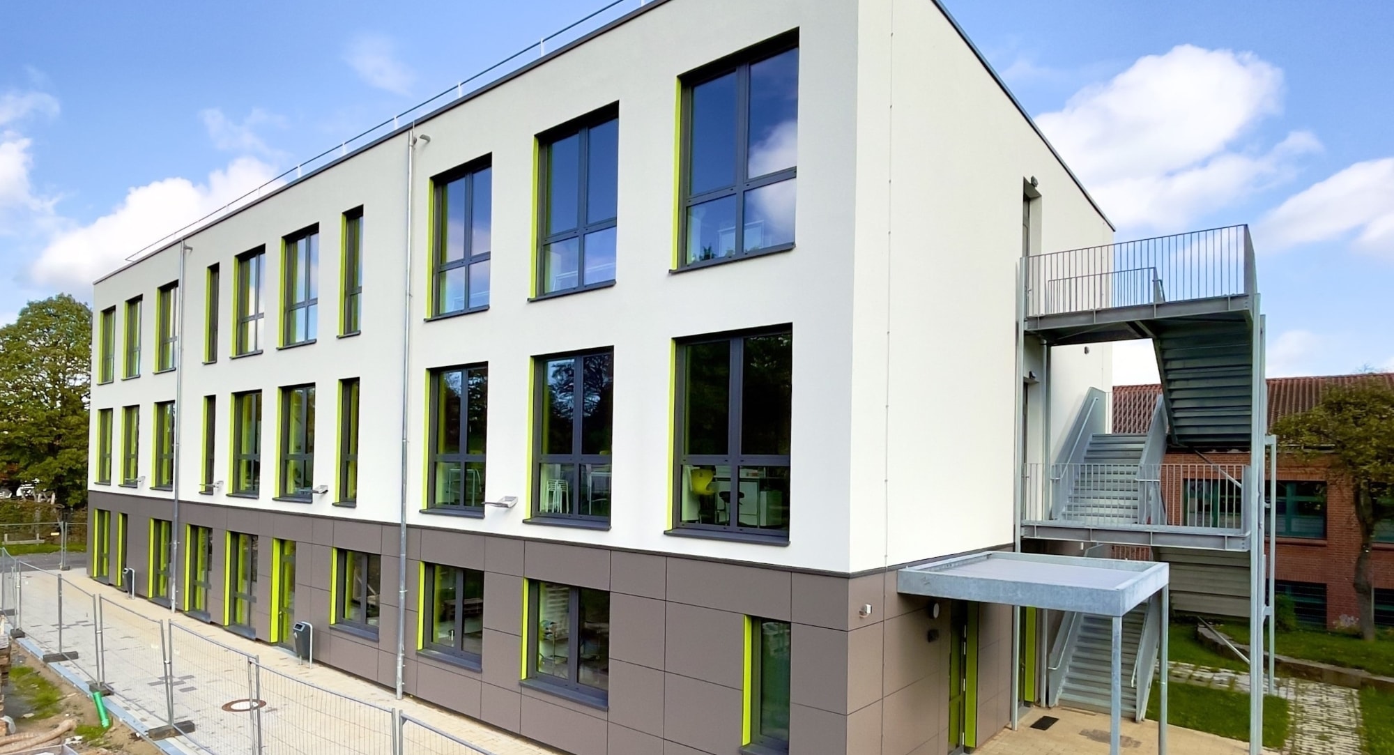 Mit der Fertigstellung der Sofortschule in Bergisch Gladbach zeigt KLEUSBERG erneutes Engagement für Nachhaltigkeit und zukunftsorientiertes Bauen.