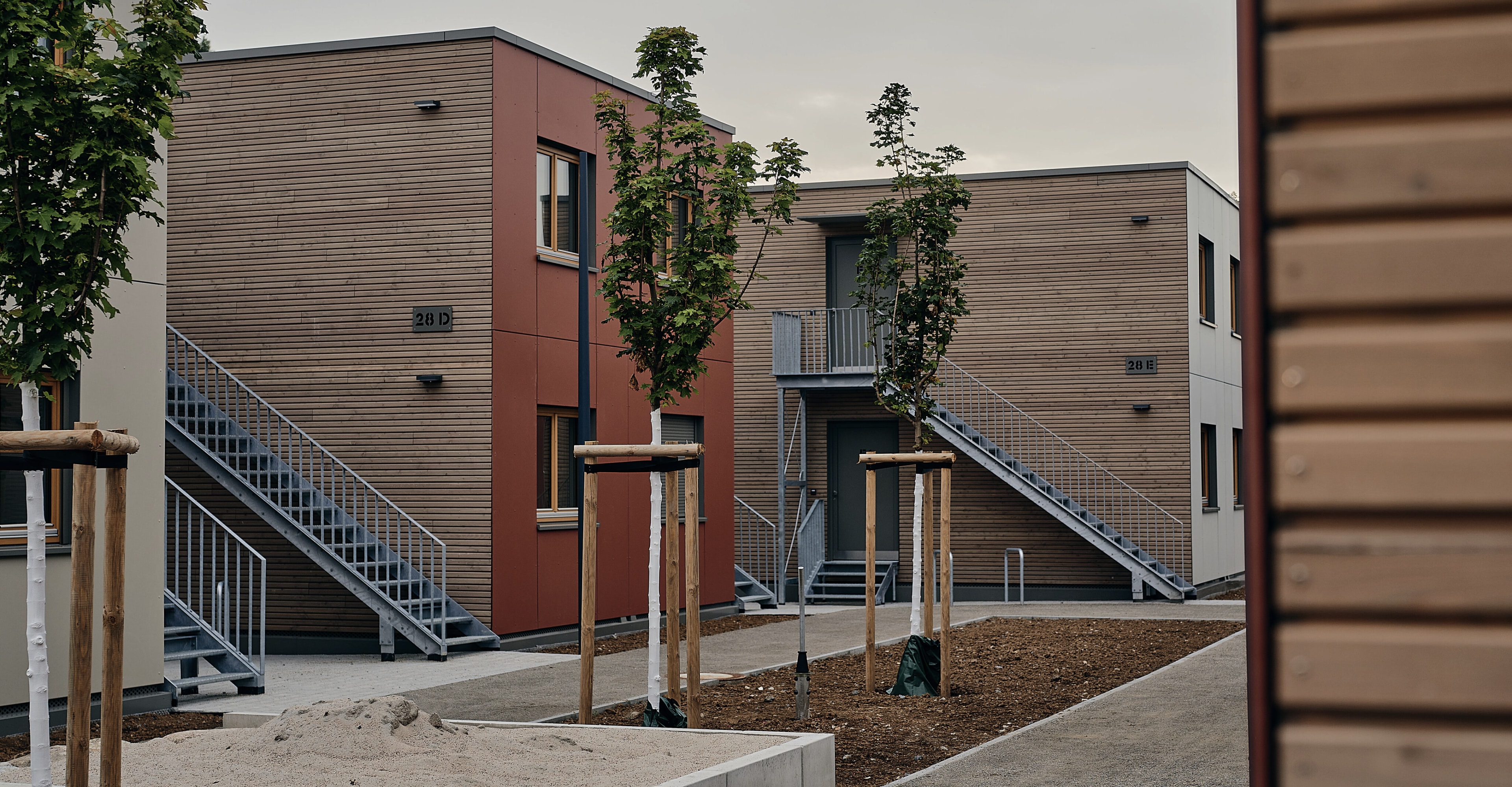 Insgesamt entstanden an vier Standorten 37 zweigeschossige Unterkünfte mit einer Bruttogeschossfläche von 7.979 m². Diese bieten den Bewohnenden die Möglichkeit, in einzelnen Wohnungen ihre Privatsphäre zu genießen, dank großzügiger Außenanlagen aber dennoch ausreichend Raum für gemeinsame Aktivitäten zu haben.